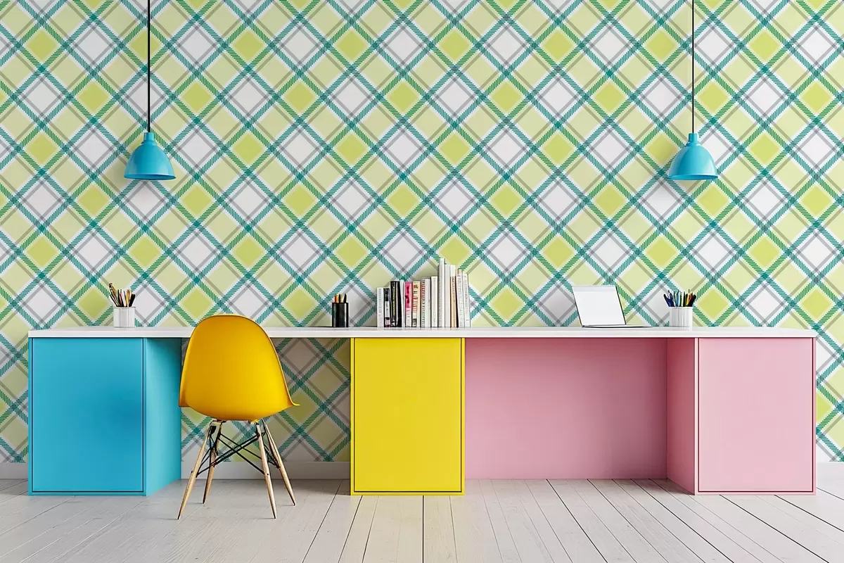 Fotobehang geruit patroon in gele tinten N° w04167v1