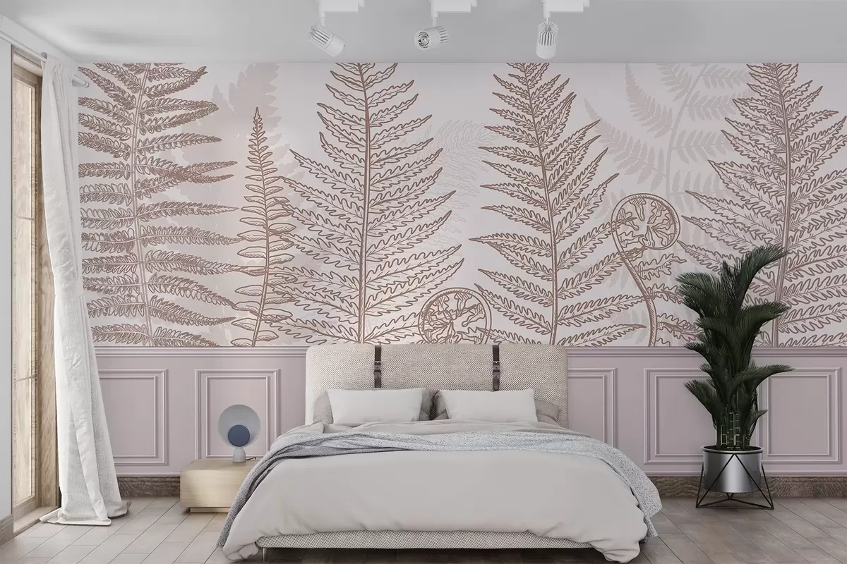 Fotobehang bladeren, planten, varen, licht, botanisch, grafisch N° w04239v1