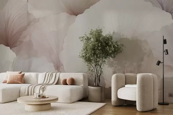 Fotobehang bloemen, bloemblaadjes, crème, grijs, zachtheid, kalmte N° w04256v1