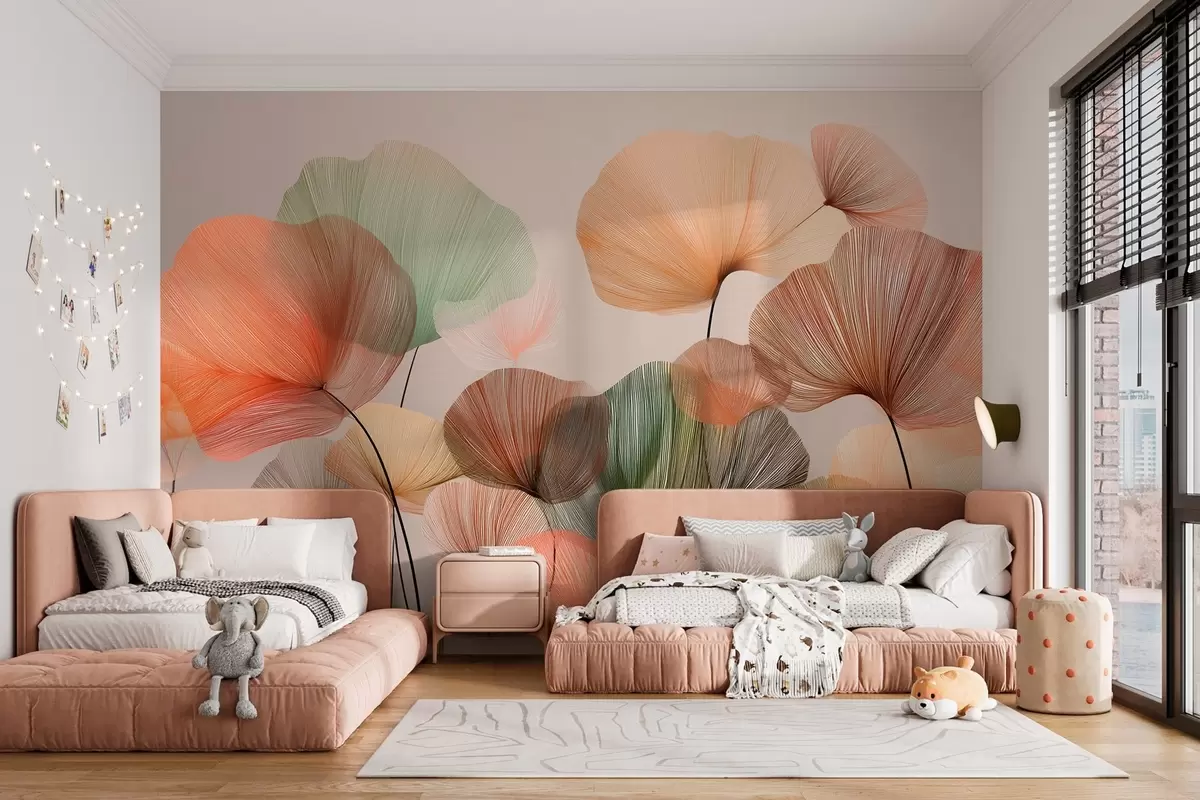 Fotobehang veelkleurige ginkgobladeren met nerven N° w04305