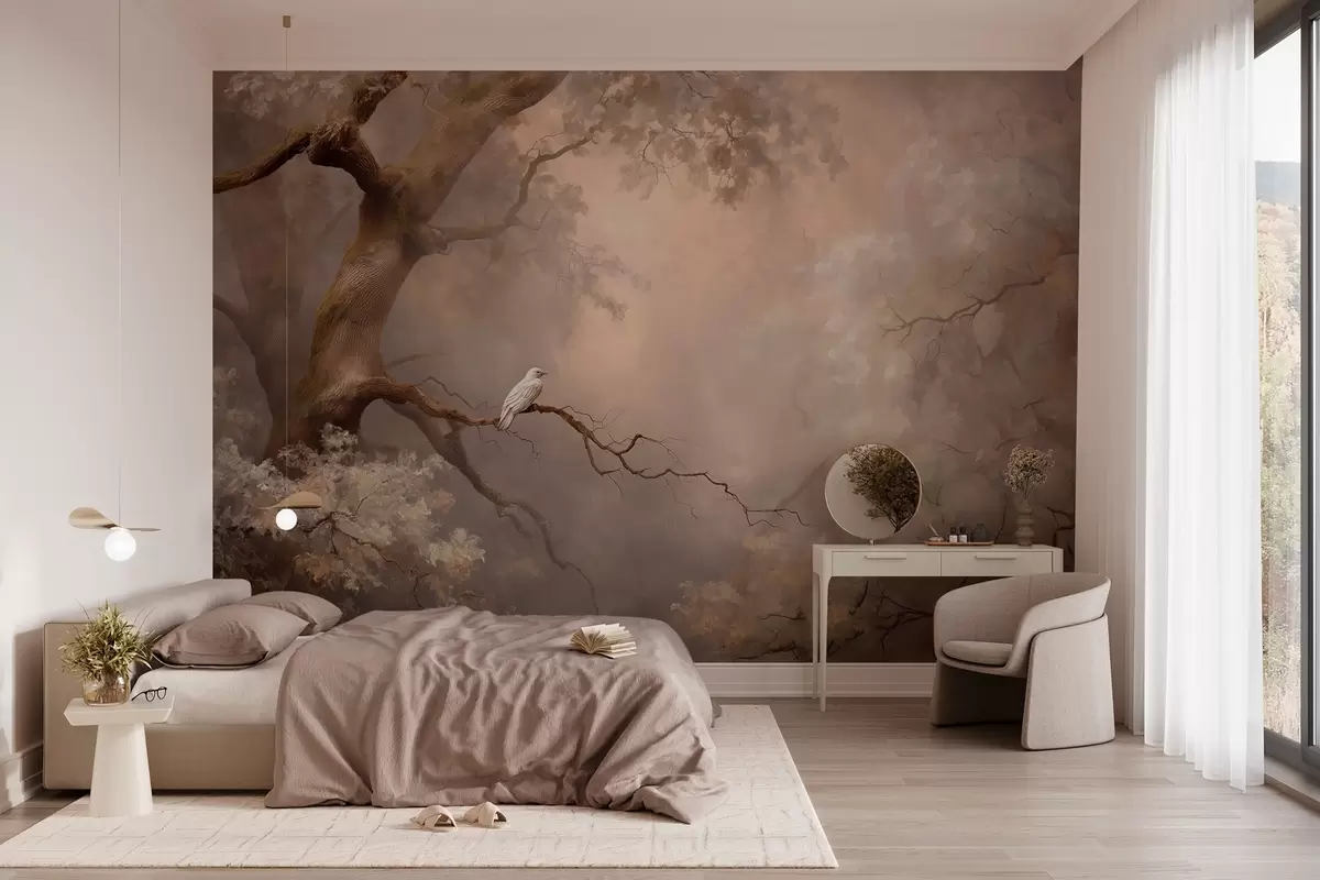 Fotobehang mystiek bos met een witte vogel N° w04314