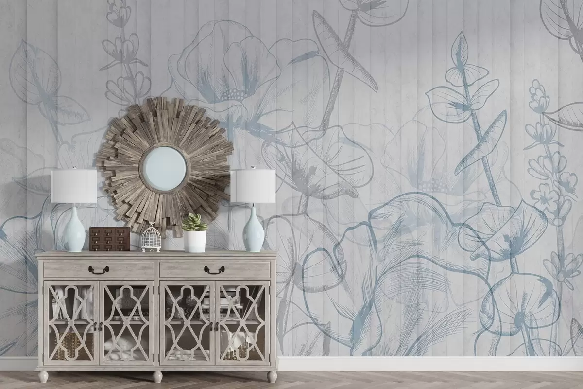Fotobehang Silhouetten van planten op een betonnen achtergrond N° w04327v1
