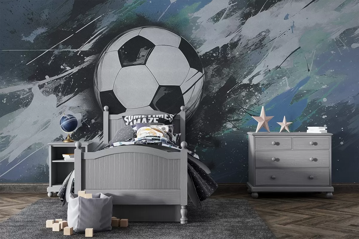 Fotobehang Voetbal met vage graffiti op de achtergrond N° w04467v1