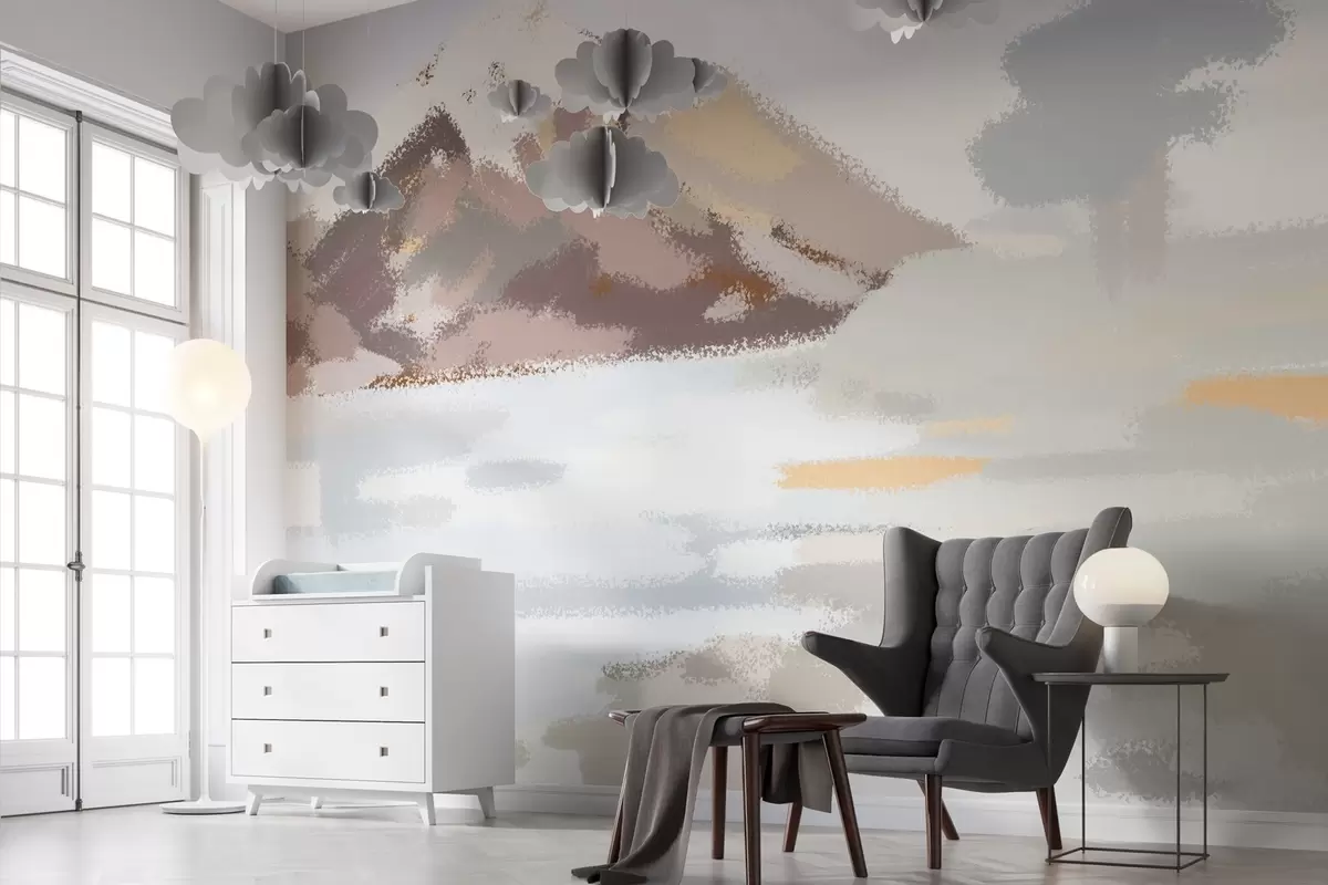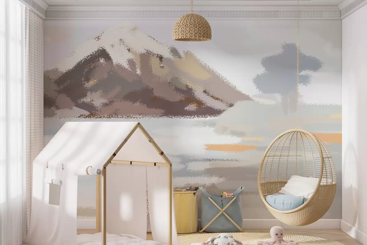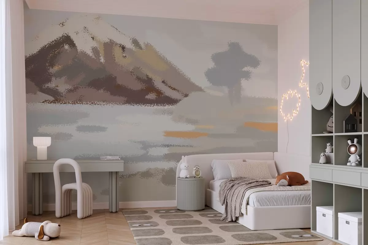 Fotobehang abstract landschap in de stijl van een kindertekening N° w04498