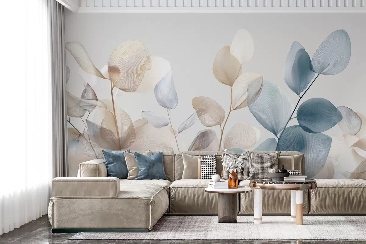 Fotobehang elegante eucalyptusbladeren met nerven N° w04503