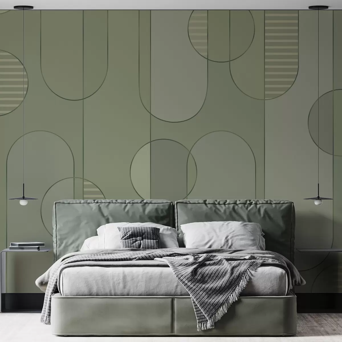 Fotobehang Geometrisch abstract met lichtgroen kleurenpalet N° w04523v1