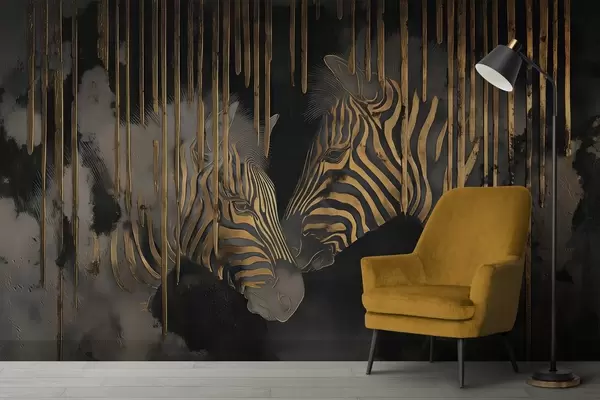 Fotobehang Zebra's met abstracte zwarte achtergrond N° w04548
