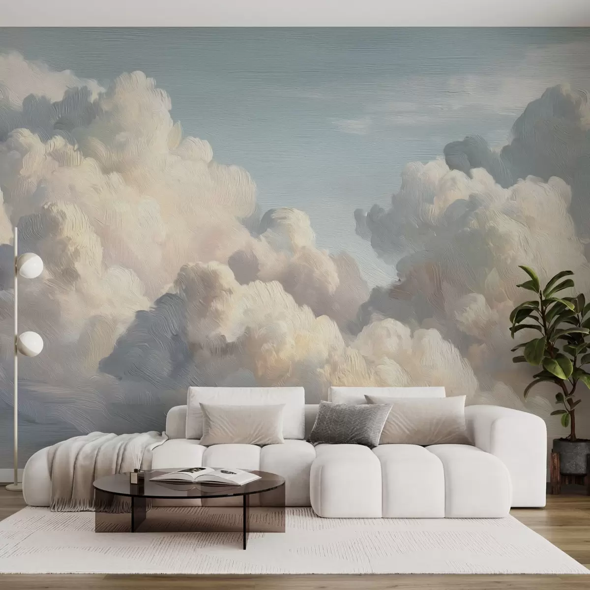 Fotobehang Wolken in een zachtblauwe lucht met lichte textuur N° w04550v2