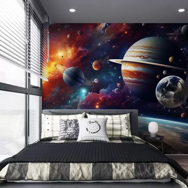 Fotobehang Kleurrijke kosmos met planeten en nevels N° w04576