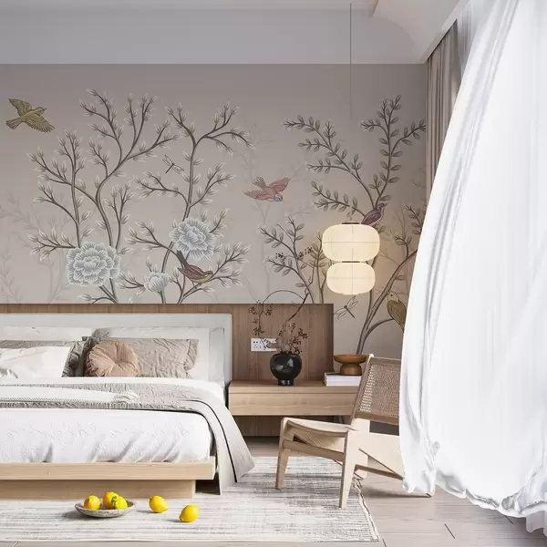 Fotobehang Bomen met vogels en bloemen N° w04605