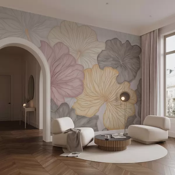 Fotobehang Grote pastelkleurige bladeren met fijne nerven N° w04612