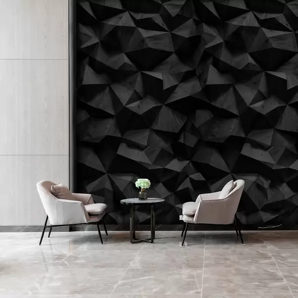 Fotobehang imitatie van een hoekige reliëfmuur van donker hout N° w04632v1