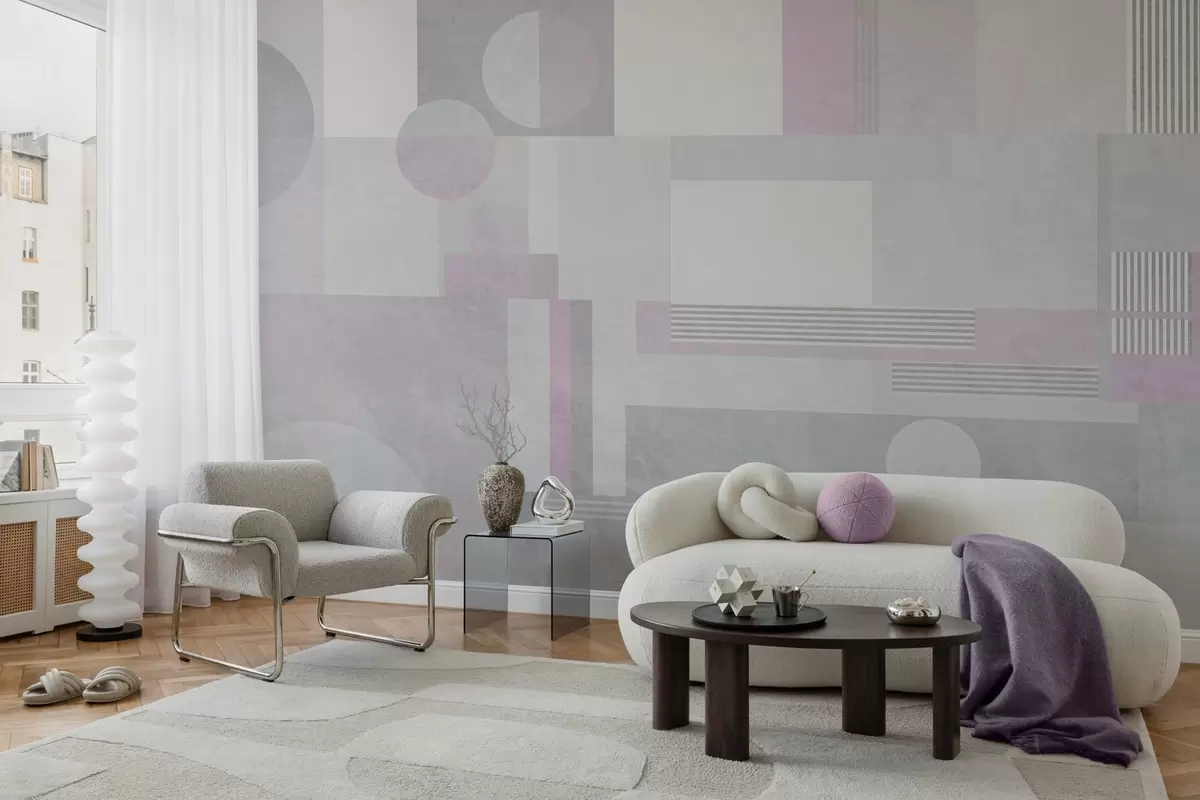 Fotobehang abstracte geometrie in grijze en lavendelkleurige tinten N° w04635v1