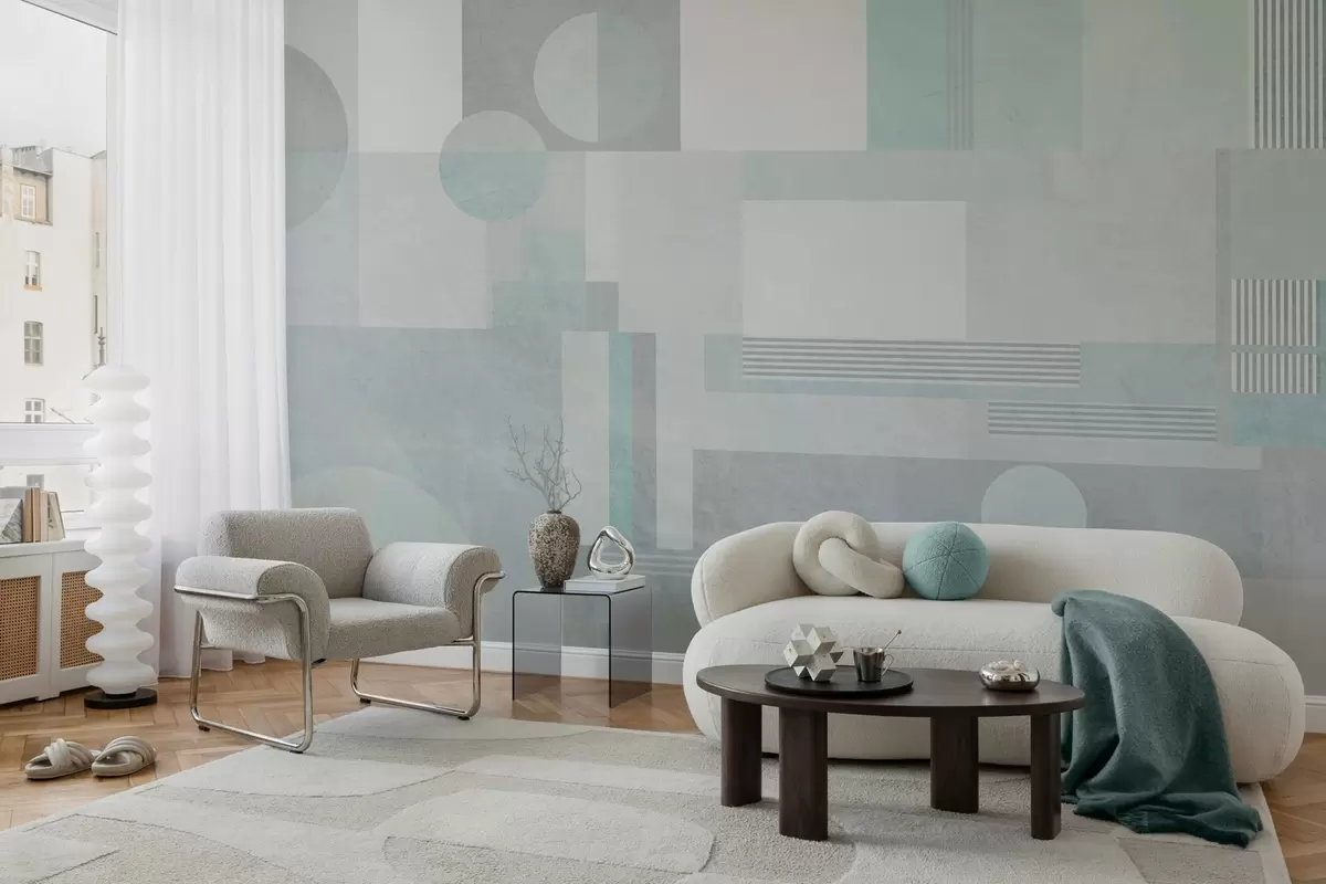 Fotobehang abstracte geometrie in grijsgroene tinten N° w04635v3