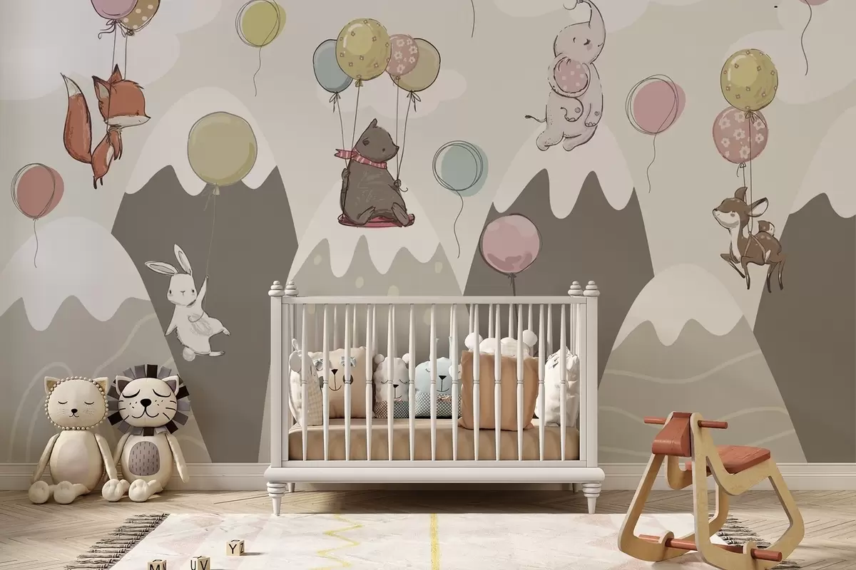 Fotobehang Scandinavische bergen voor kinderen met dieren N° w04651
