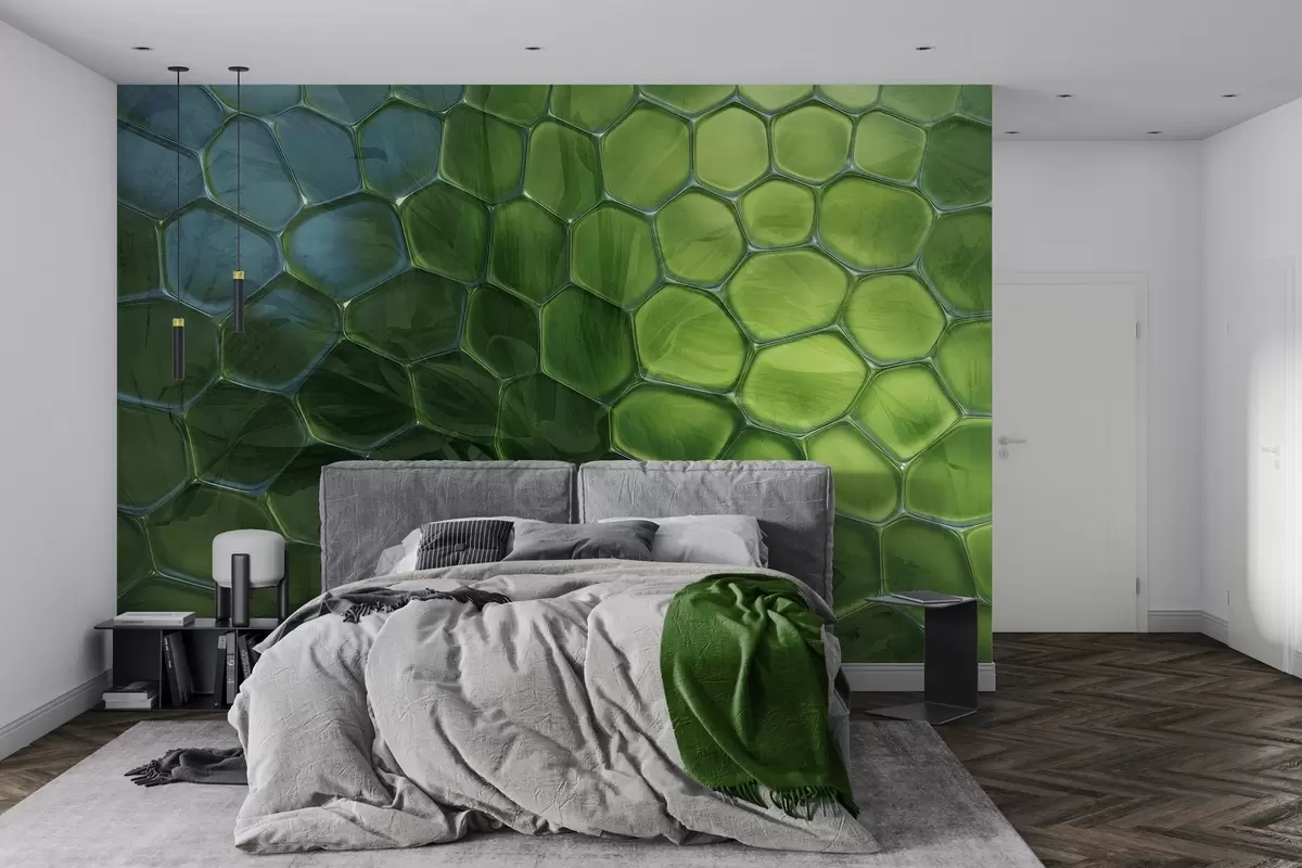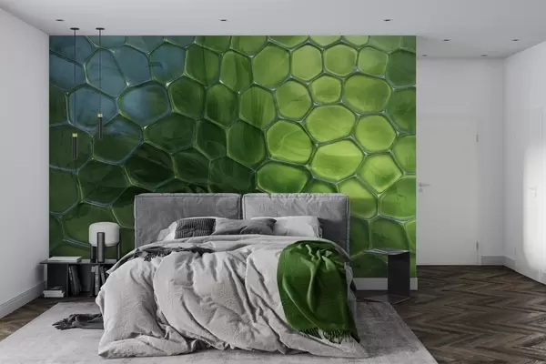 Fotobehang Bladeren door glazen honingraten N° w04667