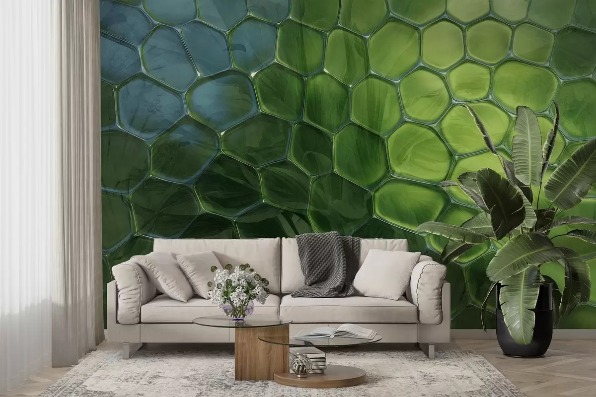 Fotobehang Bladeren door glazen honingraten N° w04667