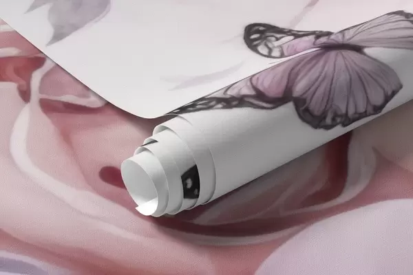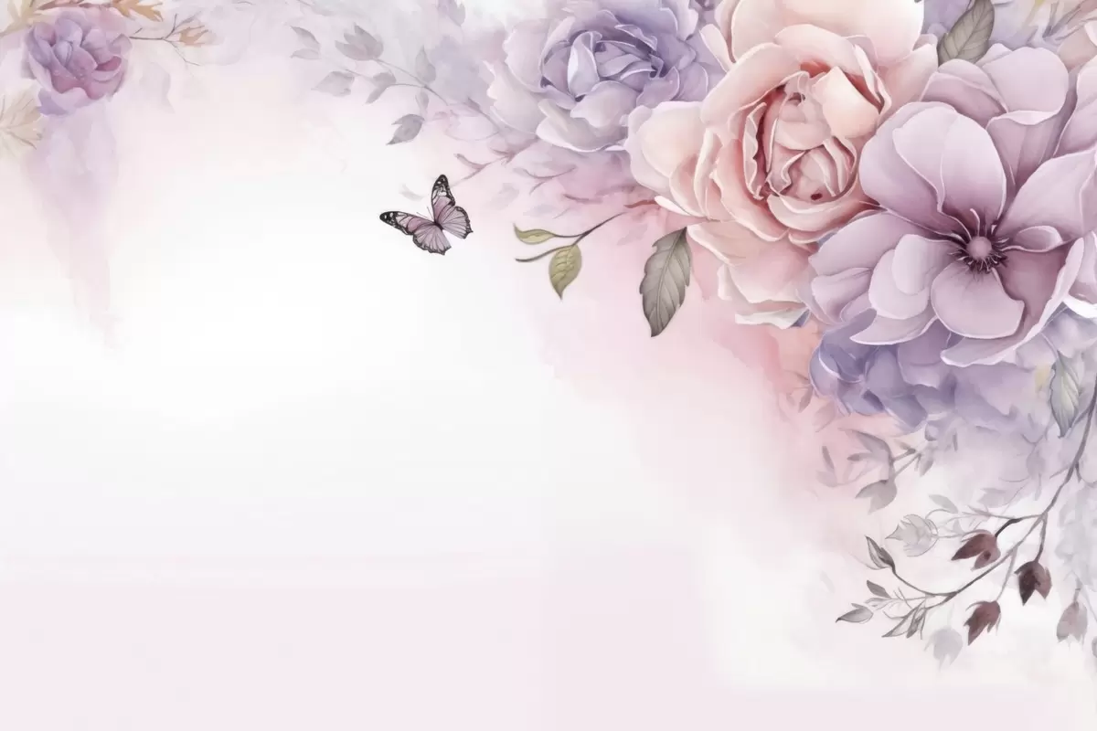 Fotobehang Delicate roze en lila bloemen met een vlinder N° w04711