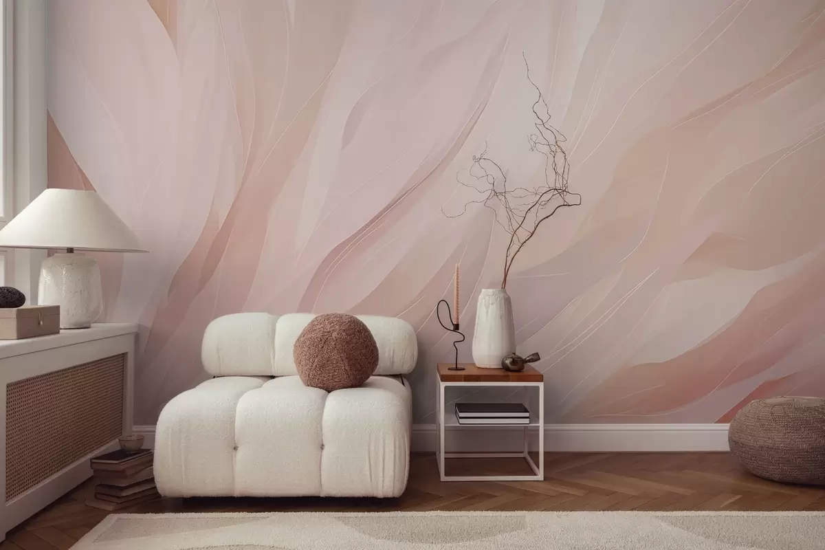 Fotobehang Abstracte zachte penseelstreken in pastelroze en perzikkleurige tinten N° w04731