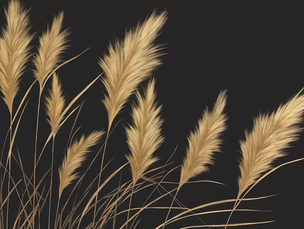 Fotobehang Pluizige tarwehalmen op een donkere achtergrond N° w04734