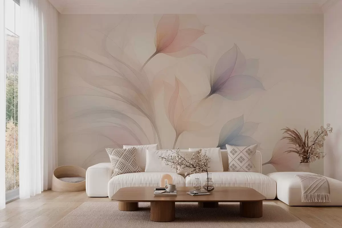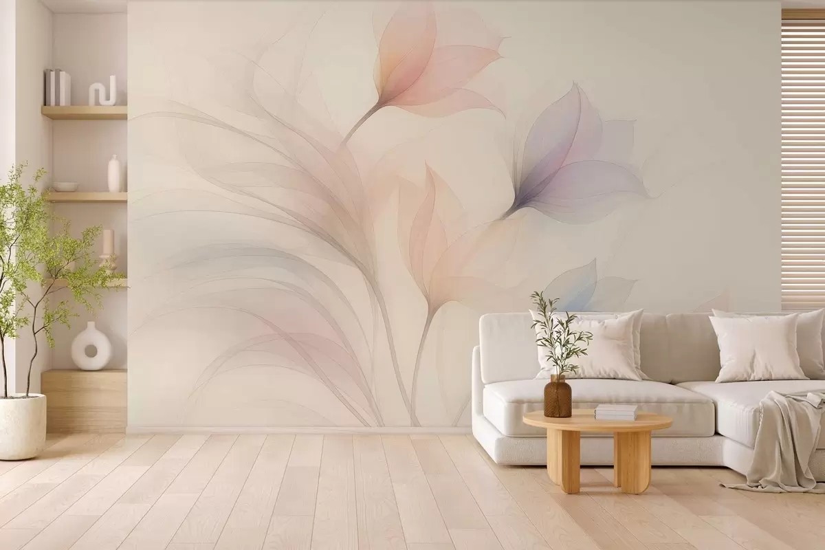 Fotobehang delicate semi-transparante tulpen op een beige achtergrond N° w04754