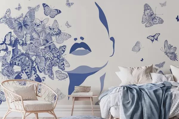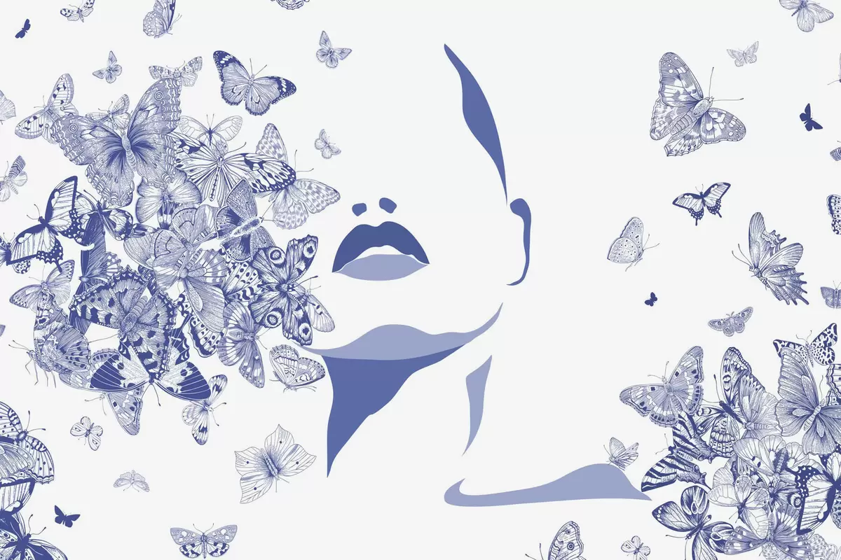 Fotobehang Silhouet van een gezicht tussen vlinders N° w04778v1