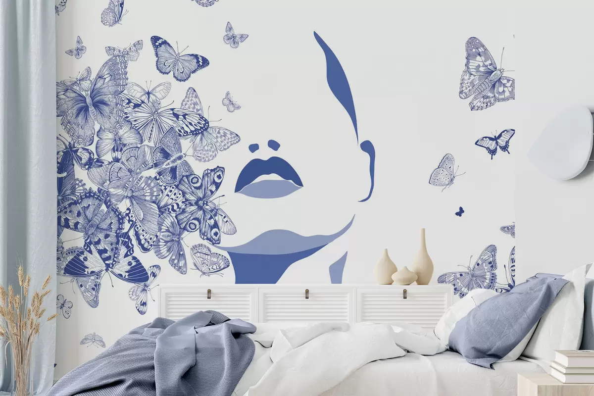 Fotobehang Silhouet van een gezicht tussen vlinders N° w04778v1