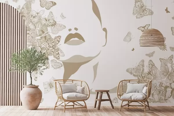 Fotobehang Silhouet van een gezicht tussen vlinders N° w04778v2