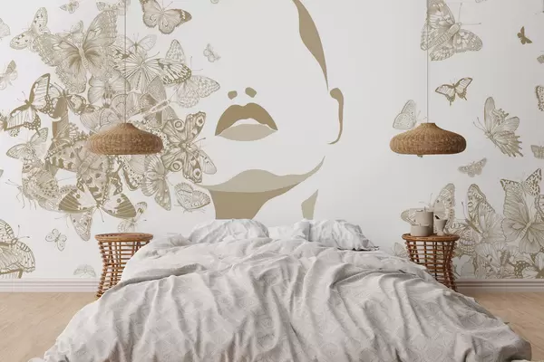 Fotobehang Silhouet van een gezicht tussen vlinders N° w04778v2
