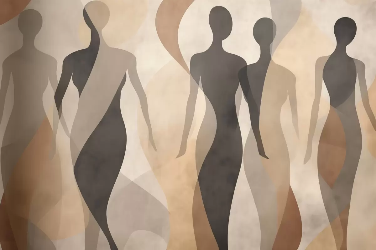 Fotobehang Silhouetten en zachte golven in warme beige-grijze tinten N° w04787