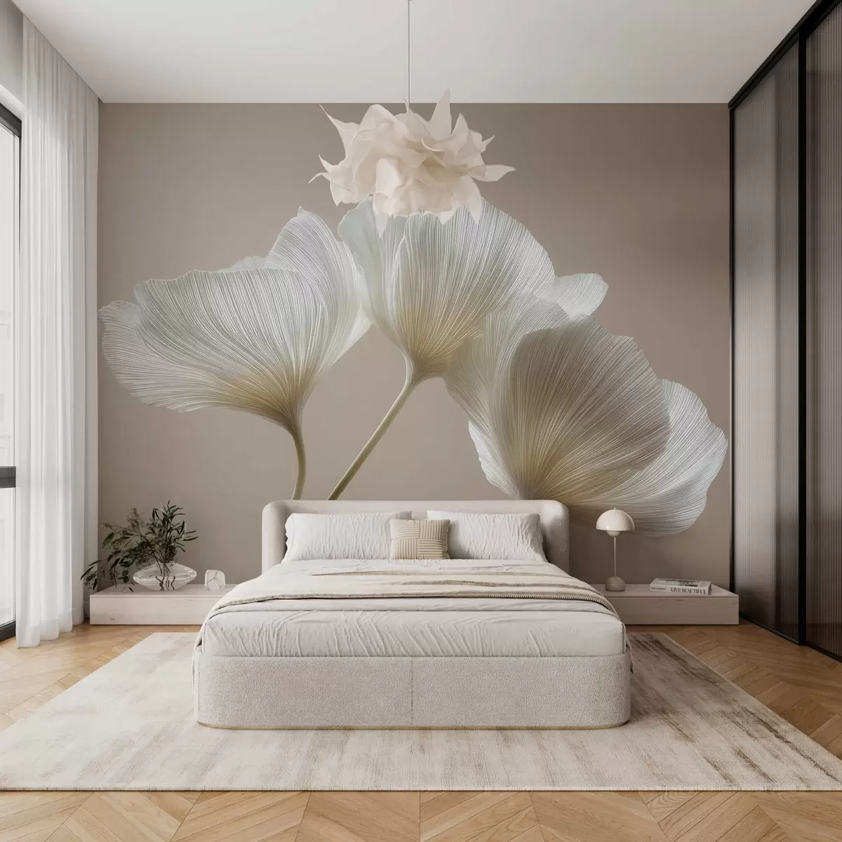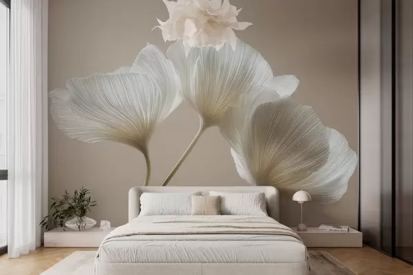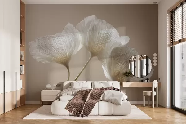 Fotobehang drie delicate bloemen op een beige achtergrond N° w04810