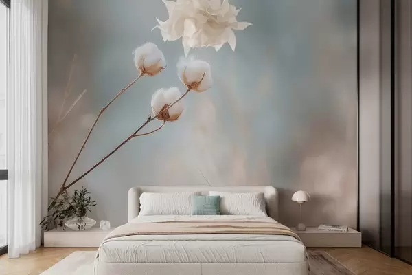 Fotobehang drie katoenbloemen op een wazige achtergrond N° w04820