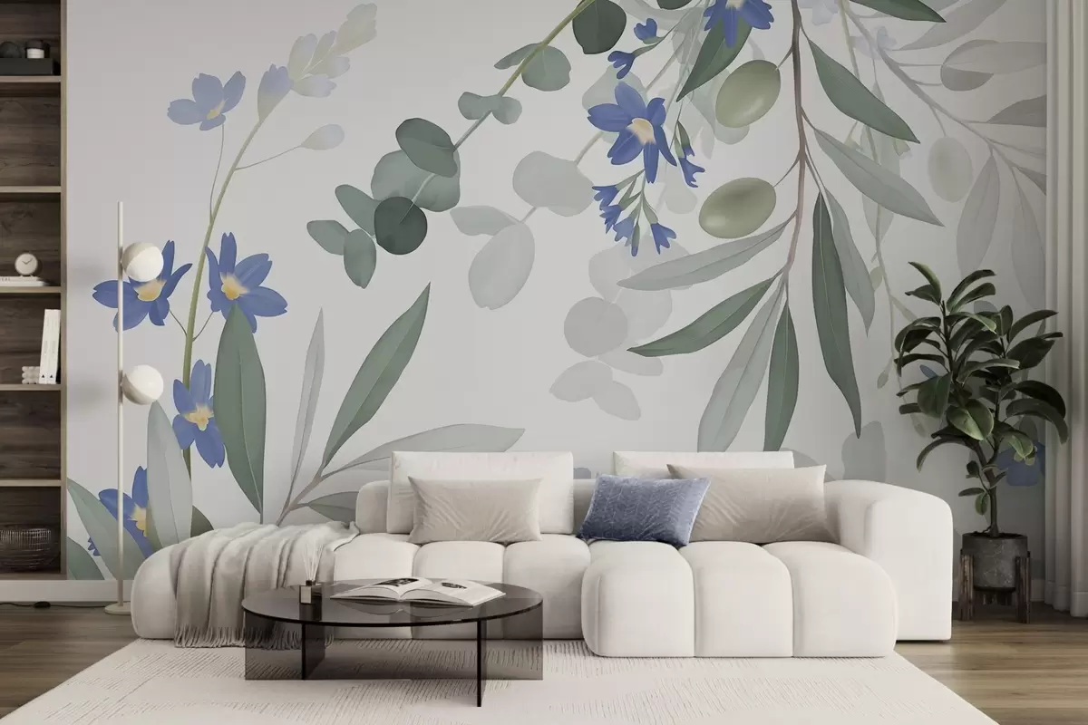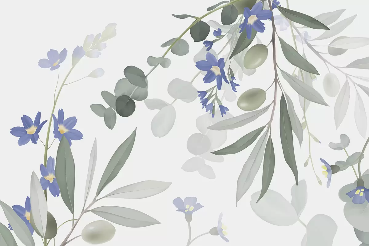 Fotobehang Eucalyptustakken en bloemen N° w04821