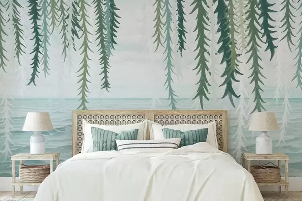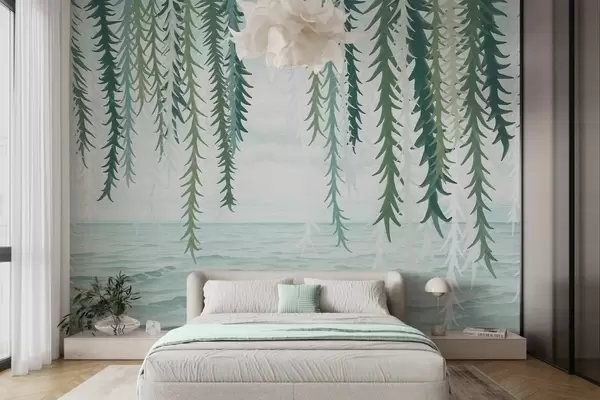 Fotobehang Delicate wijnstokken hangend boven water in aquarelstijl N° w04830