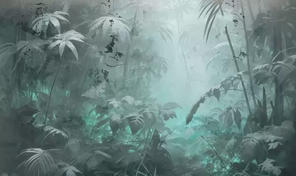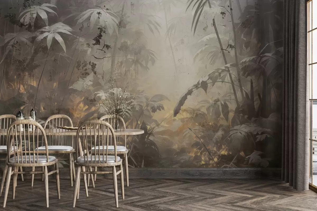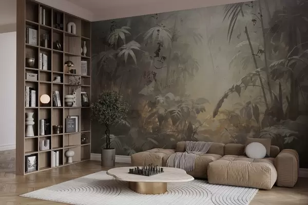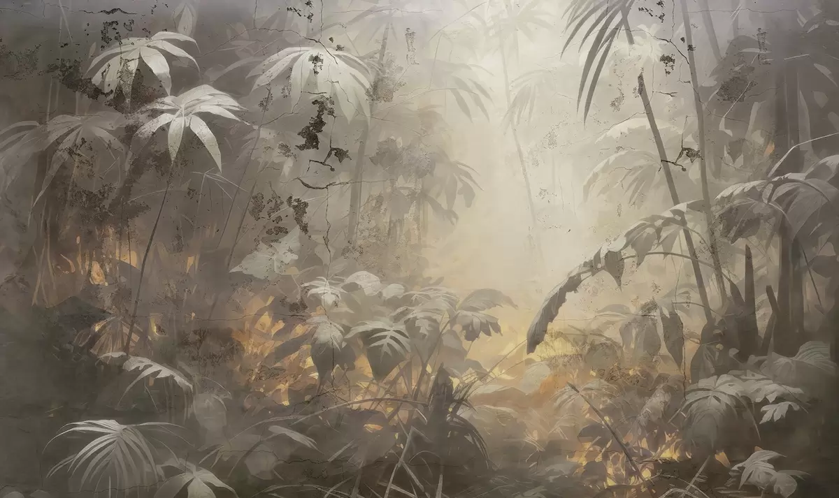 Fotobehang Geschilderde jungle achter een grunge betonnen muur N° w04833