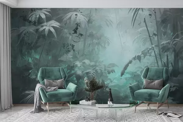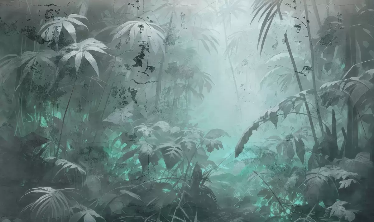 Fotobehang Geschilderde jungle achter een grunge betonnen muur N° w04833v1