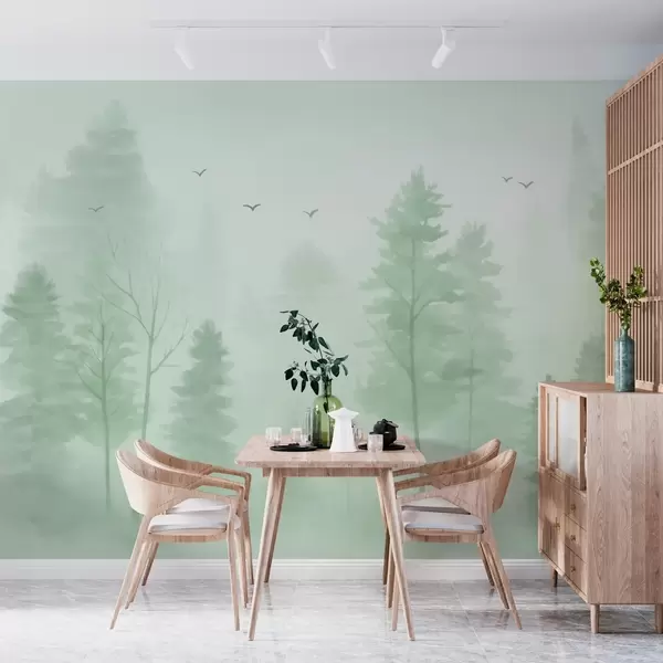 Fotobehang luchtfoto van bos in groene tinten, geschilderd in aquarelstijl N° w04872v1