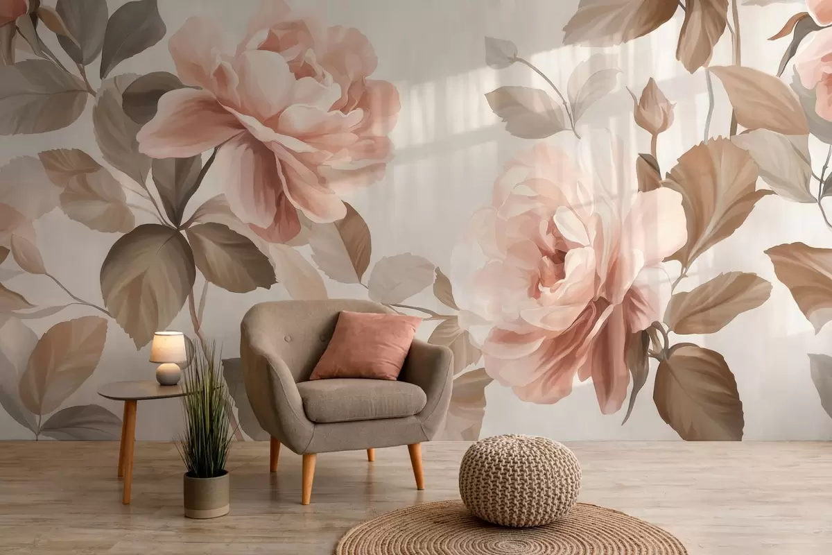 Fotobehang pittoreske rozen in de stijl van olieverfschilderijen N° w04873