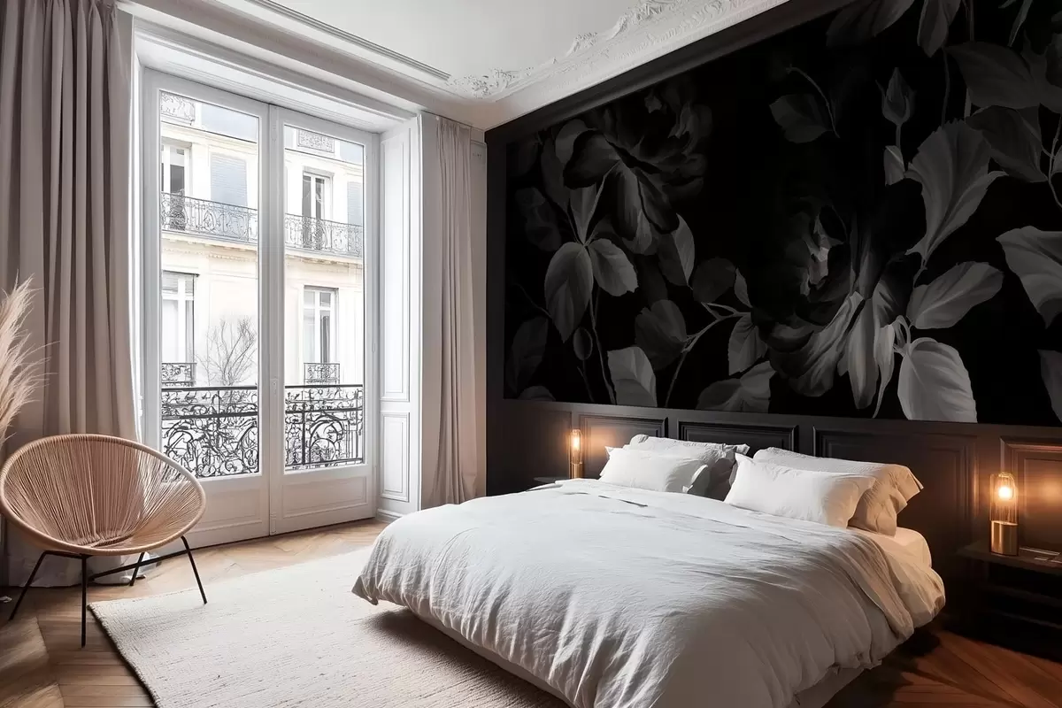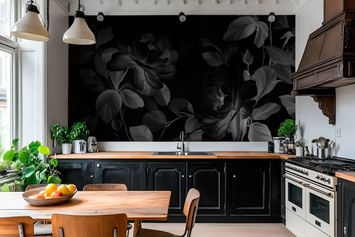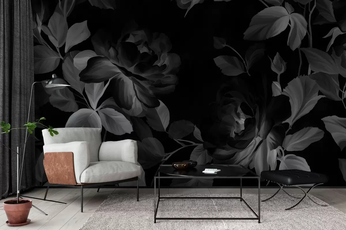 Fotobehang zwart-witte pittoreske rozen in de stijl van een olieverfschilderij N° w04873v1