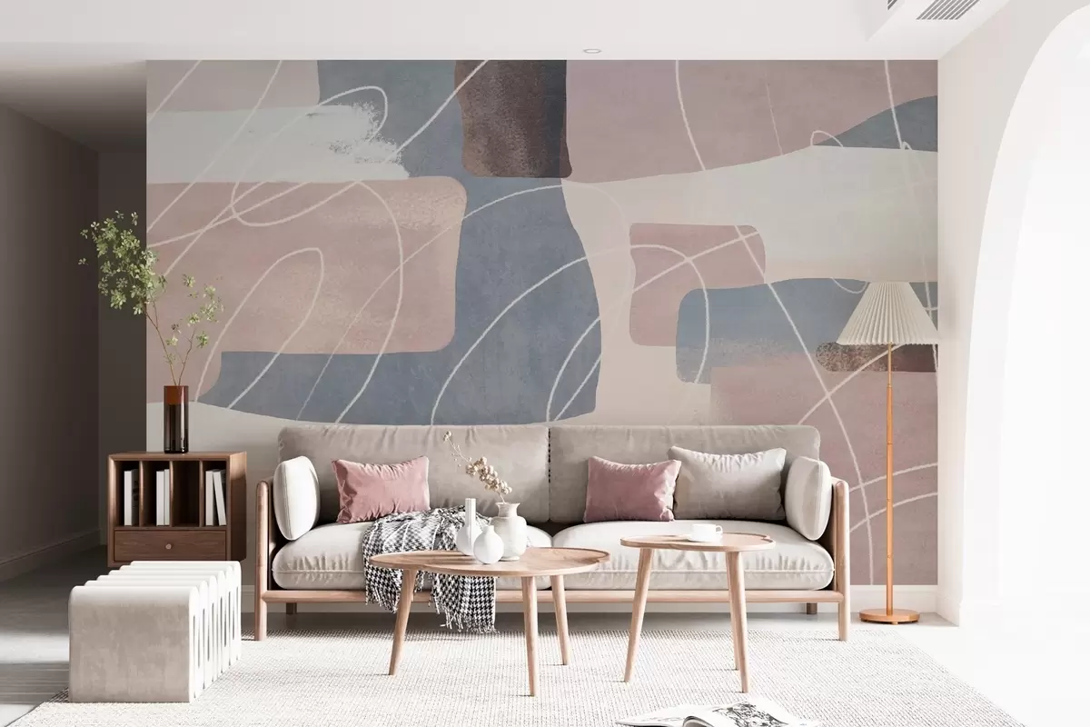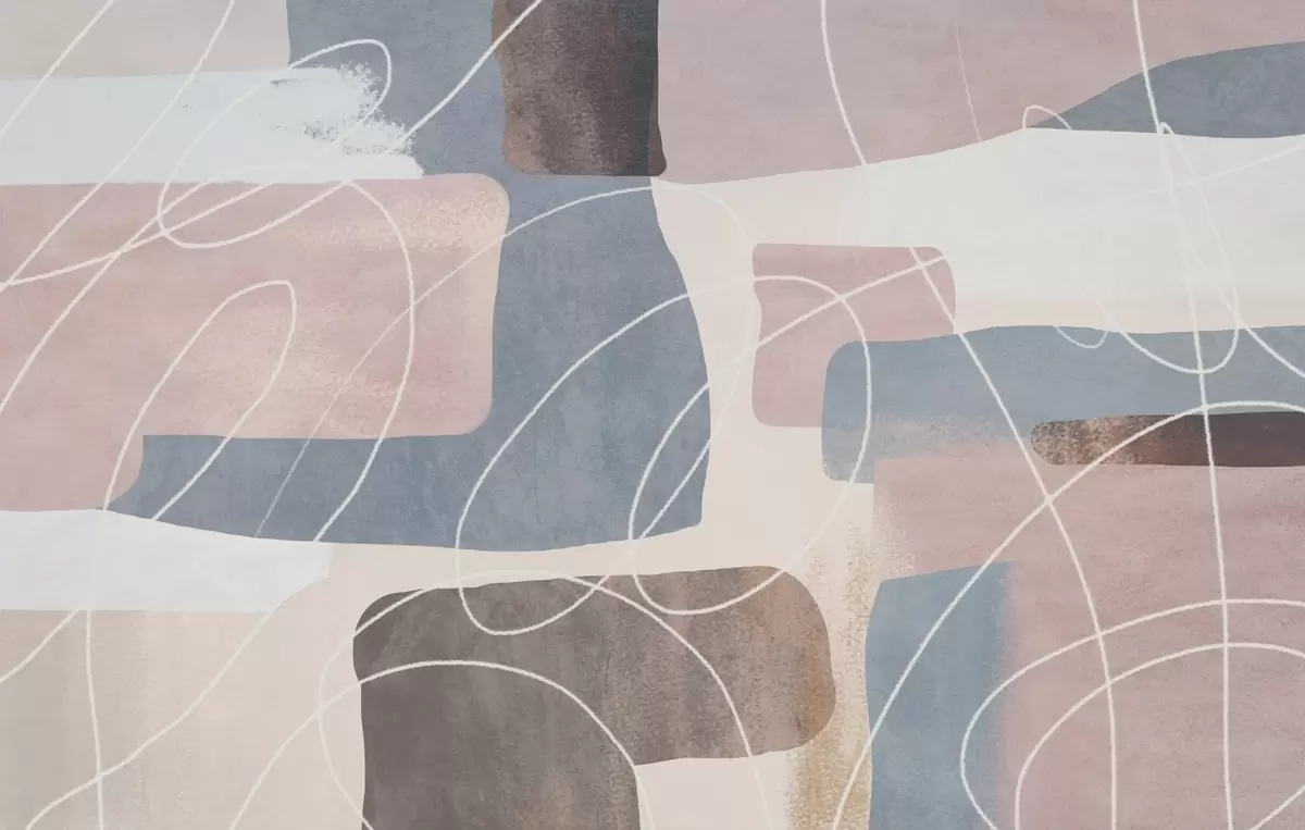 Fotobehang moderne abstractie in tinten poederroze, grijsblauw, beige en bruin N° w04877