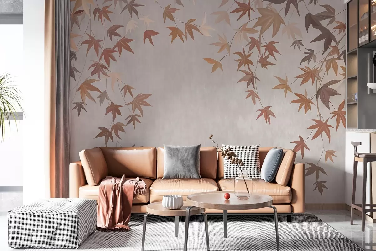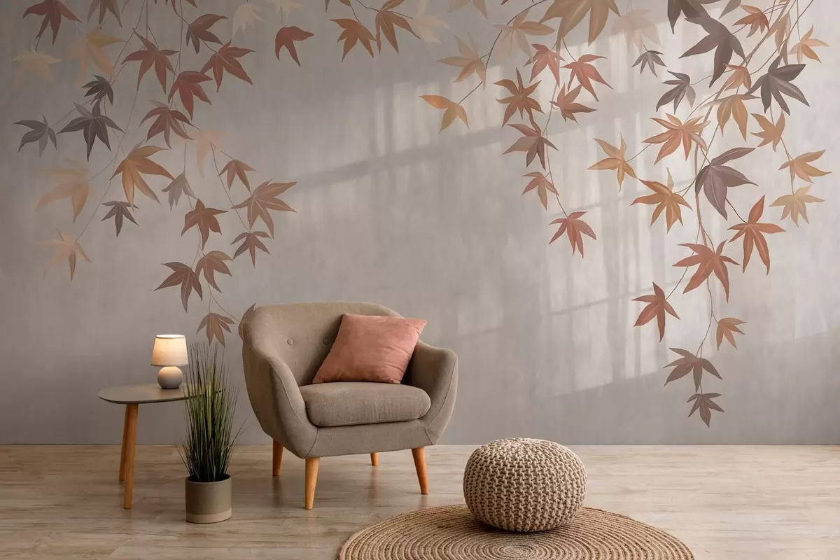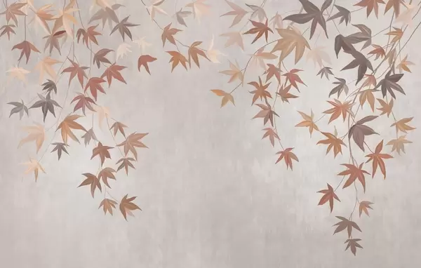 Fotobehang veelkleurige klimopbladeren die van bovenaf vallen in de stijl van een olieverfschilderij N° w04878
