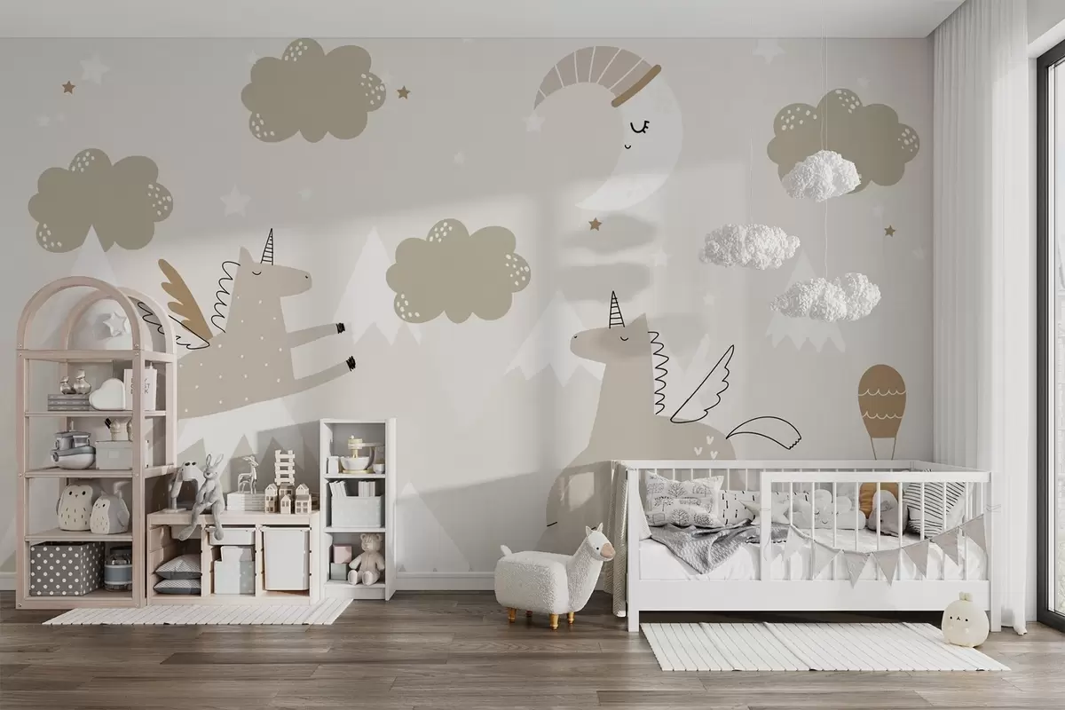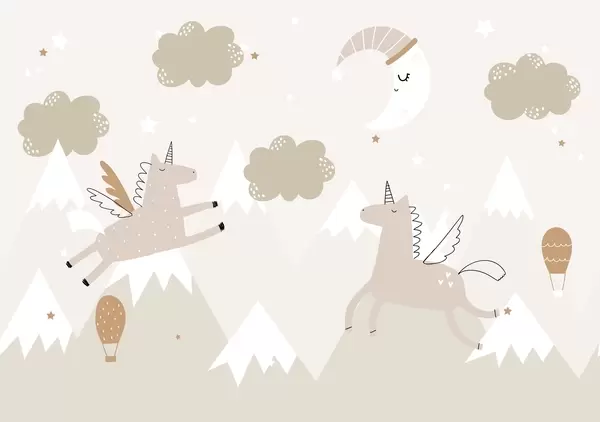 Fotobehang Slapende maan, eenhoorns en ballonnen N° w04886