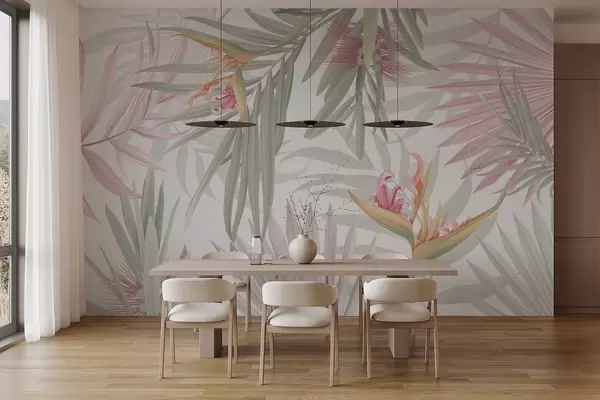 Fotobehang Strelitzia in palmbladeren N° w04896v1