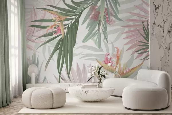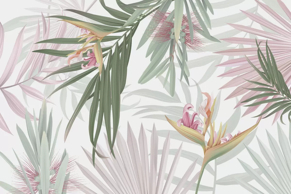 Fotobehang Strelitzia in palmbladeren N° w04896v2