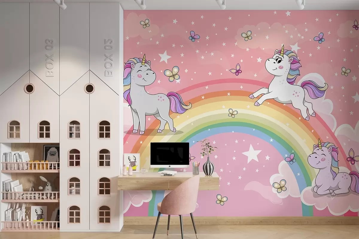 Fotobehang Eenhoorns op een regenboog N° w04930