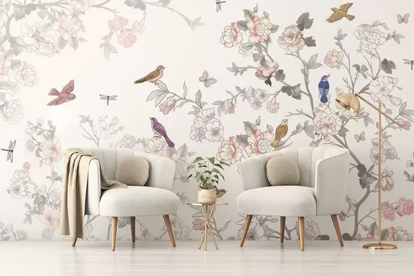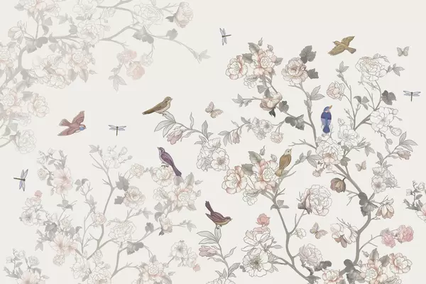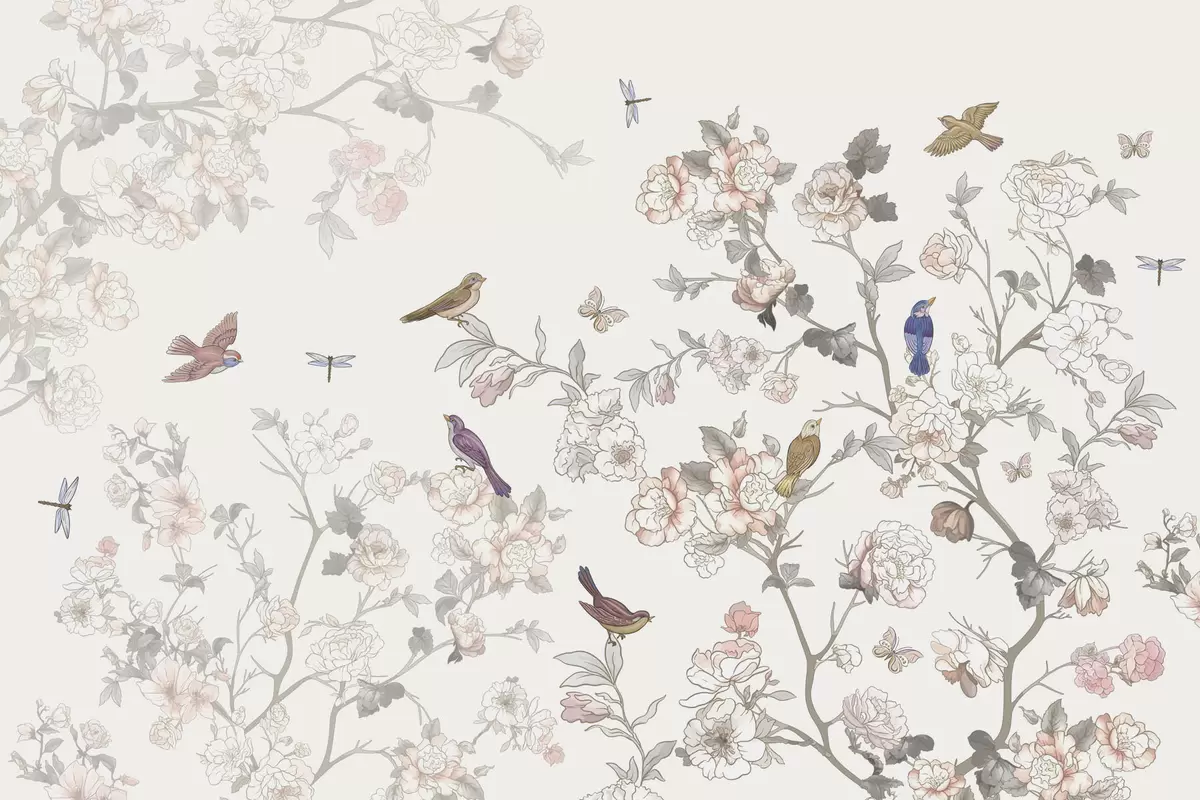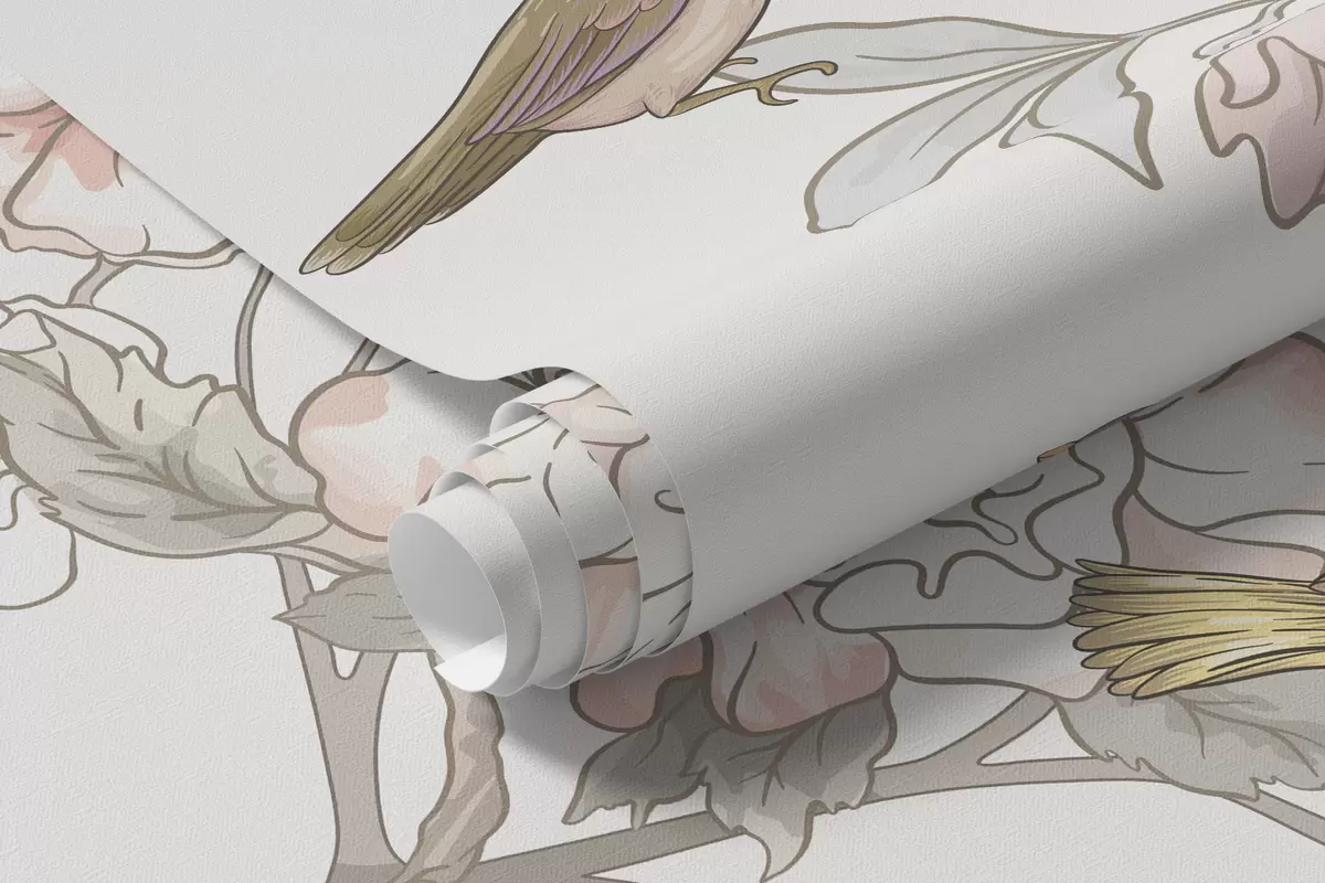 Fotobehang Vogels bij takken met bloemen N° w04939