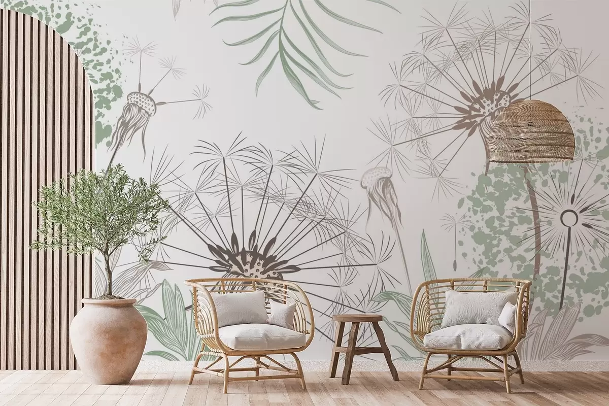 Fotobehang Paardenbloemen tussen het gebladerte N° w04942v1