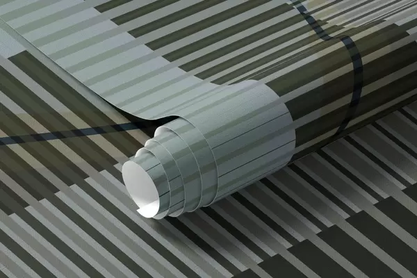 Het resultaat is dat je je behangpapier al in rollen gesneden ontvangt, netjes verpakt voor levering.