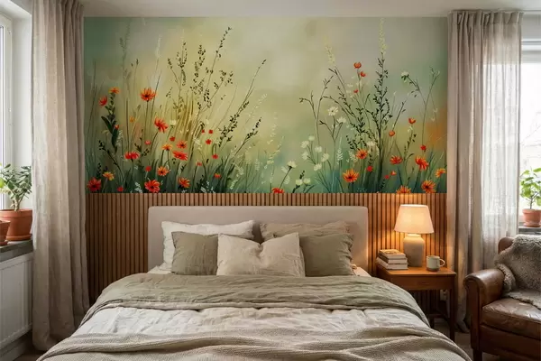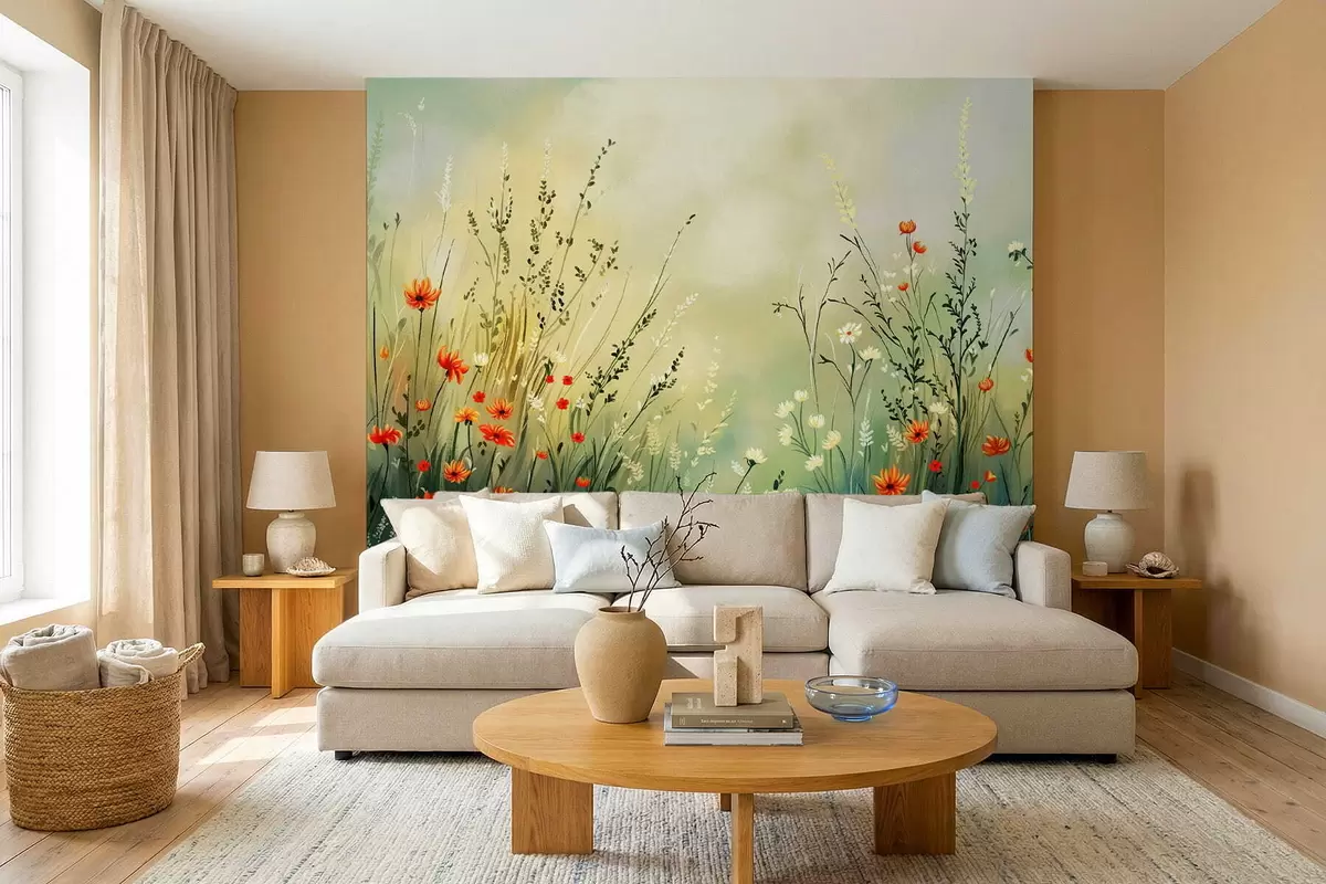 Fotobehang Weidebloemen en grassen in zachte, schilderachtige stijl N° w05015