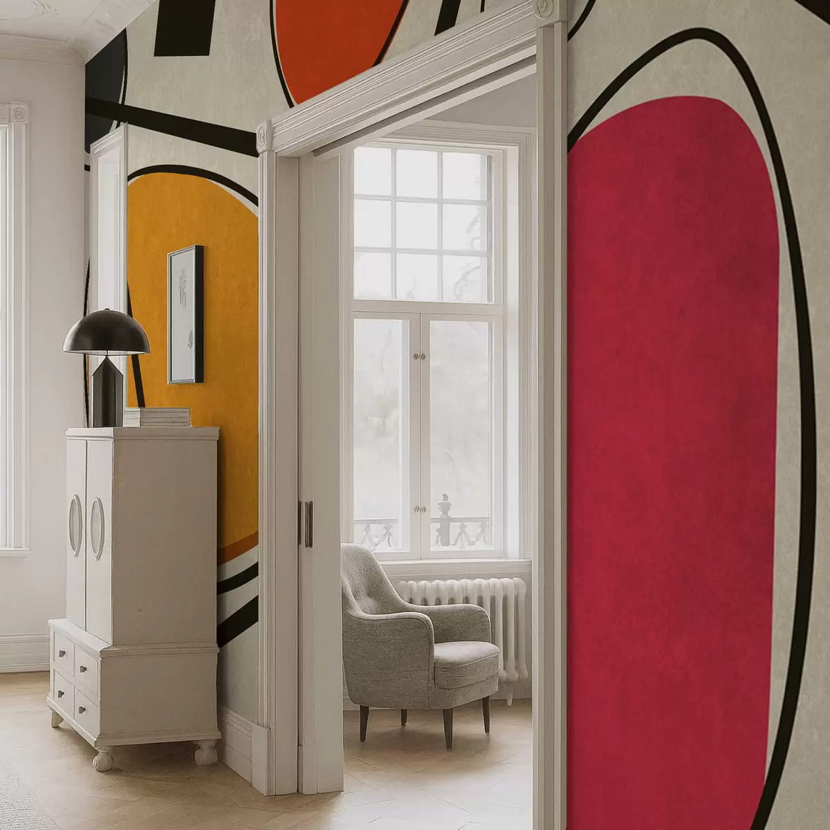 Fotobehang Abstracte vormen en lijnen met gedurfde kleurvlakken N° w05017